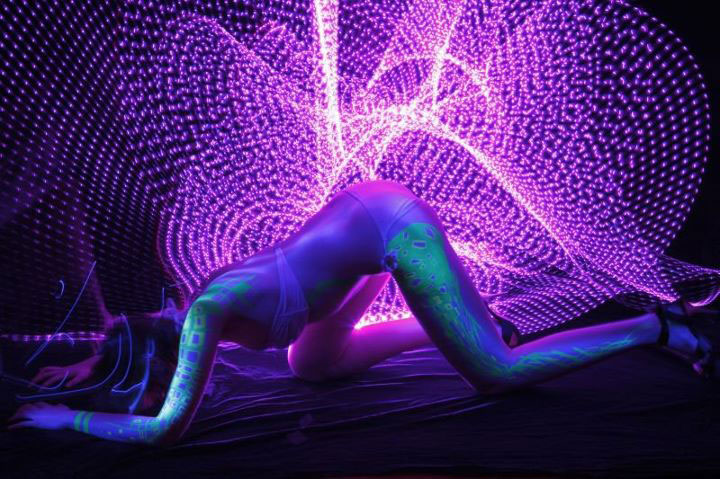 Il utilise beaucoup la tablette graphique pour ses créations ou lors de session freestyle VJing en soirée comme "Enjoy".