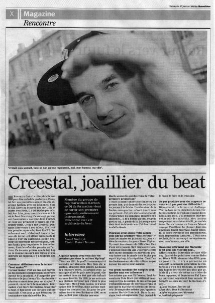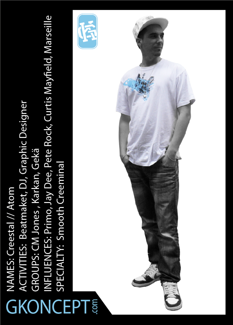 DJ/producteur du groupe Karkan, composé de Gil et d'Ysae depuis 1996, Creestal est passé du dessin à la peinture, puis aux platines et ensuite à la Mpc.