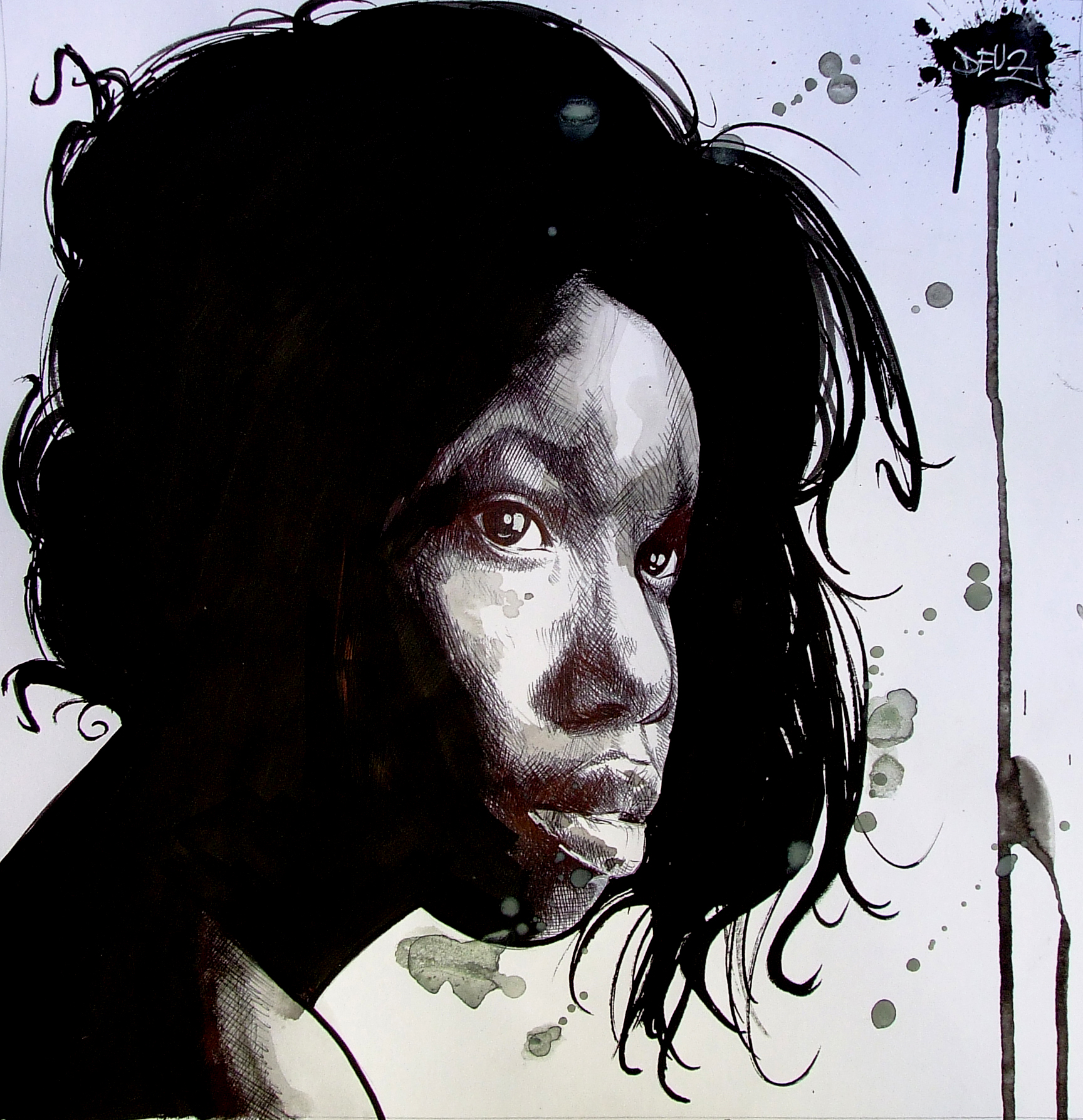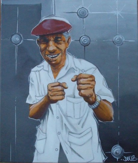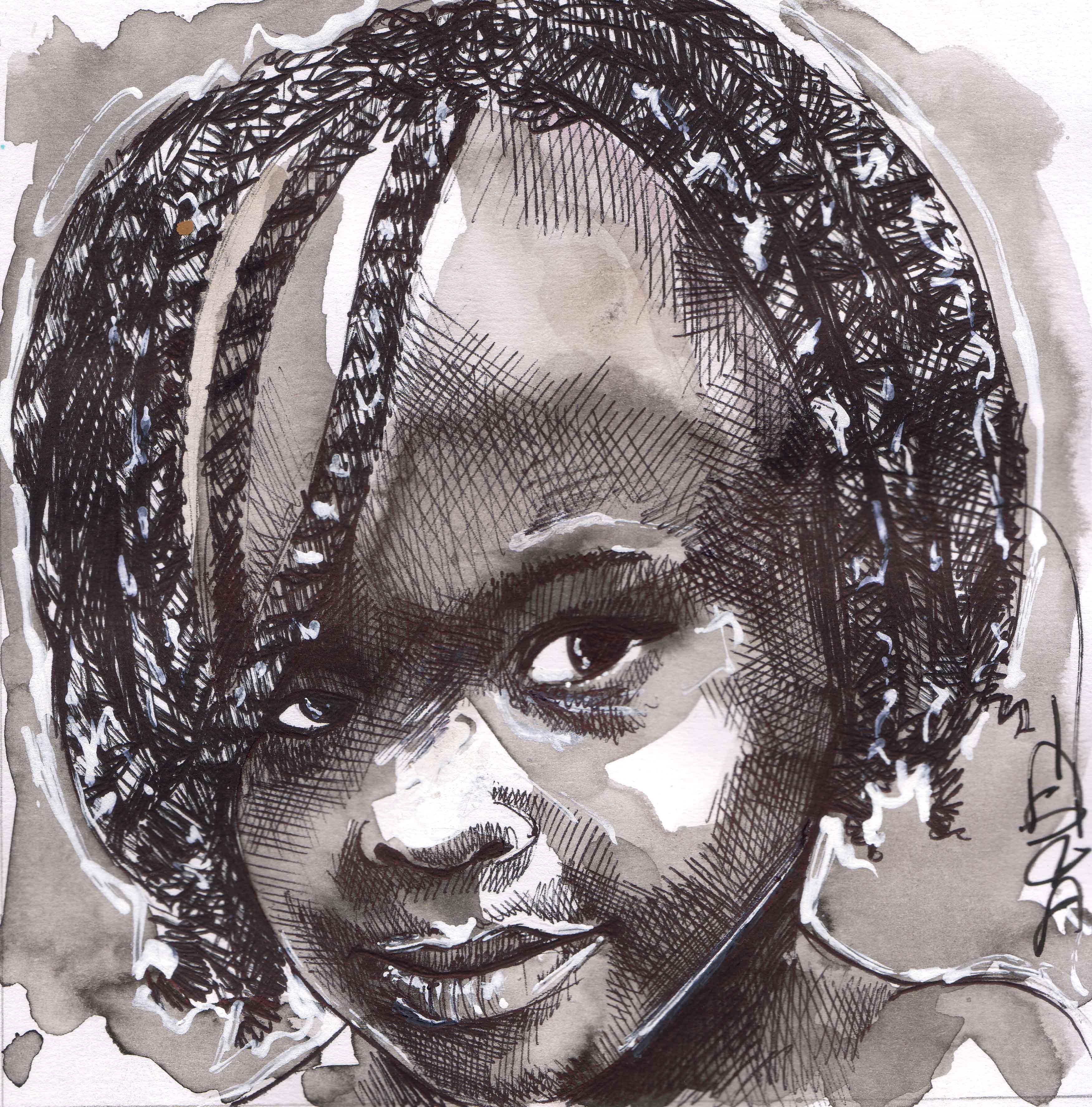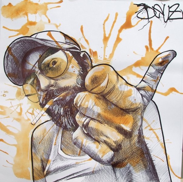 son travail de portraits au stylo bille ou a la bombe est un echange entre les modeles et l'artiste.